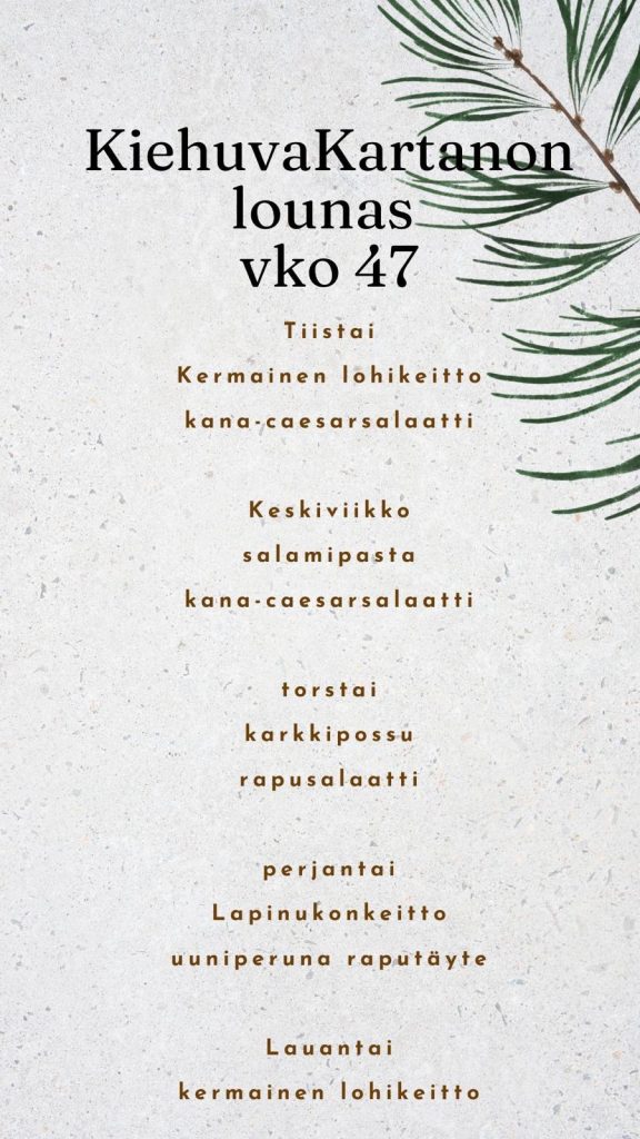 Tulevan viikon lounaslista päivitetään aina maanantaisin.